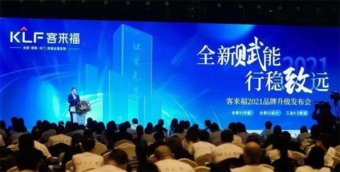2021年10月11日客來福“全新賦能,行穩(wěn)致遠”品牌升級發(fā)布會在合肥白金漢爵大酒店成功舉行。對外發(fā)布全新的品牌體系,正式啟用工業(yè)4.0和VI識別系統(tǒng),開啟品牌全新發(fā)展的新里程。