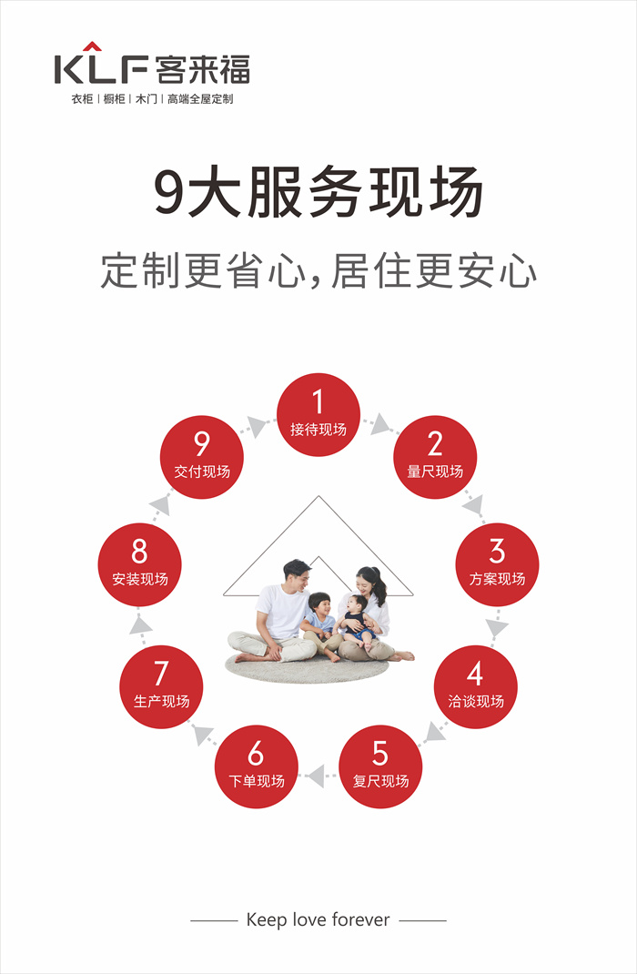 客來福家居扎根家居行業(yè)二十年,從單一家具產品到實現(xiàn)全屋定制,客來福用產品和服務說話,開辟了一條屬于自己的發(fā)展之路。在發(fā)展過程中客來福不忘初心,將“締造幸福家居生活,讓愛無界”作為企業(yè)愿景,為更多中國家庭定制幸福家居生活。